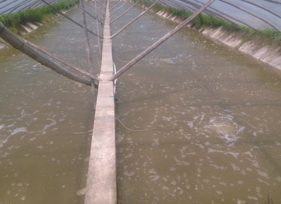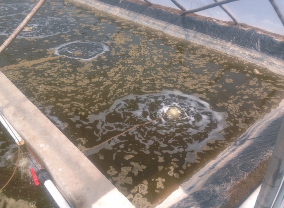 由于采用的是不培养藻相直接放苗的方式,在前期很少会出现藻类过度繁殖的情况,但若是底肥不足或缺少矿物元素,可能会出现连续倒藻后浮游动物爆发引起的水掉清或提早浑浊的“白浊水”,藻类活动减弱会影响溶氧、光照,进而影响对虾脱壳,严重的甚至会出现掉苗。
