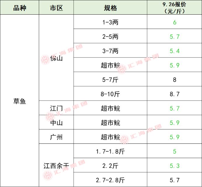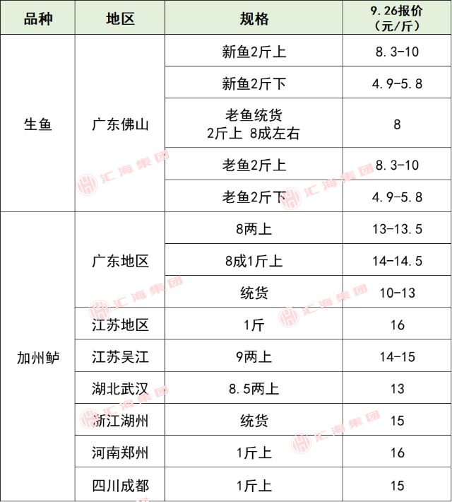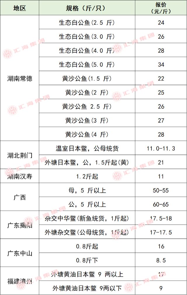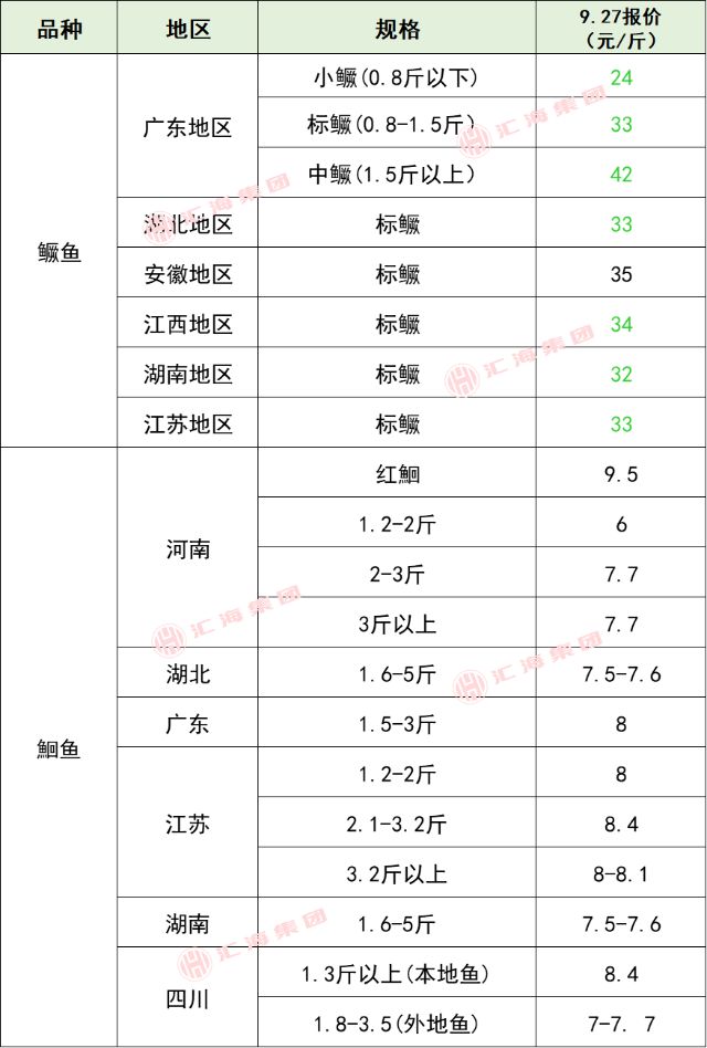 价格行情 2025年9月27日全国部分地区水产品塘头收购价格