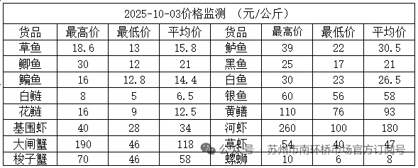 标题: 2025年10月3日苏州南环桥批发市场部分水产品批发价