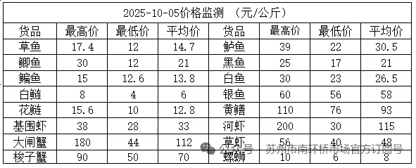 标题: 2025年10月5日苏州南环桥批发市场部分水产品批发价