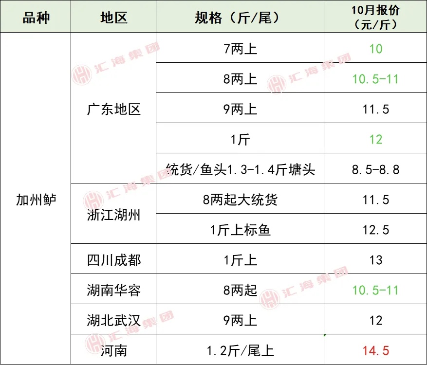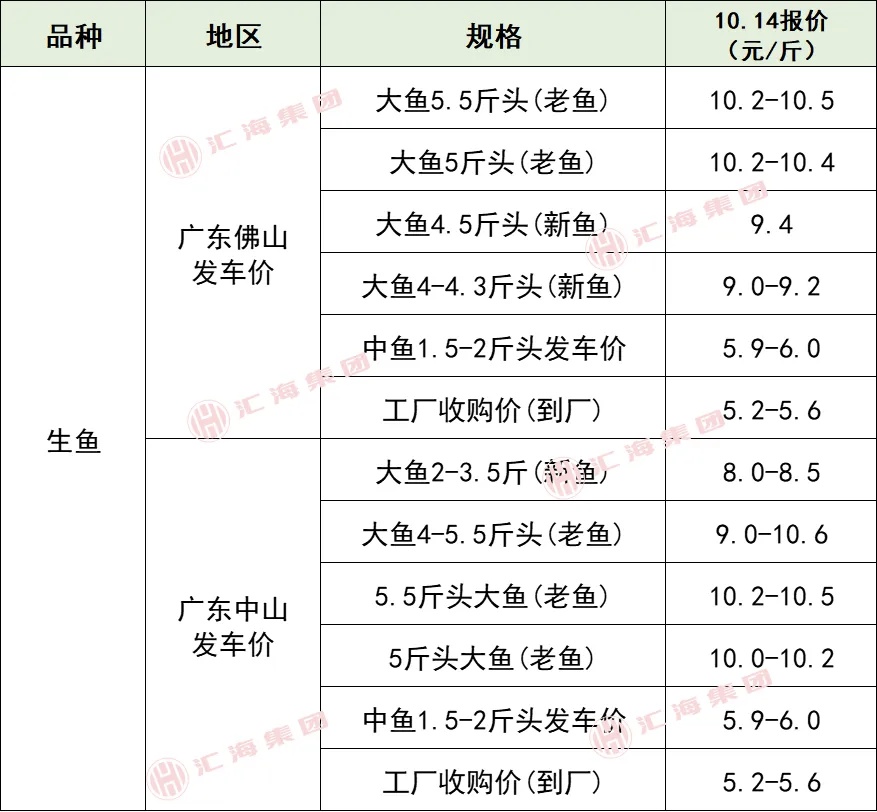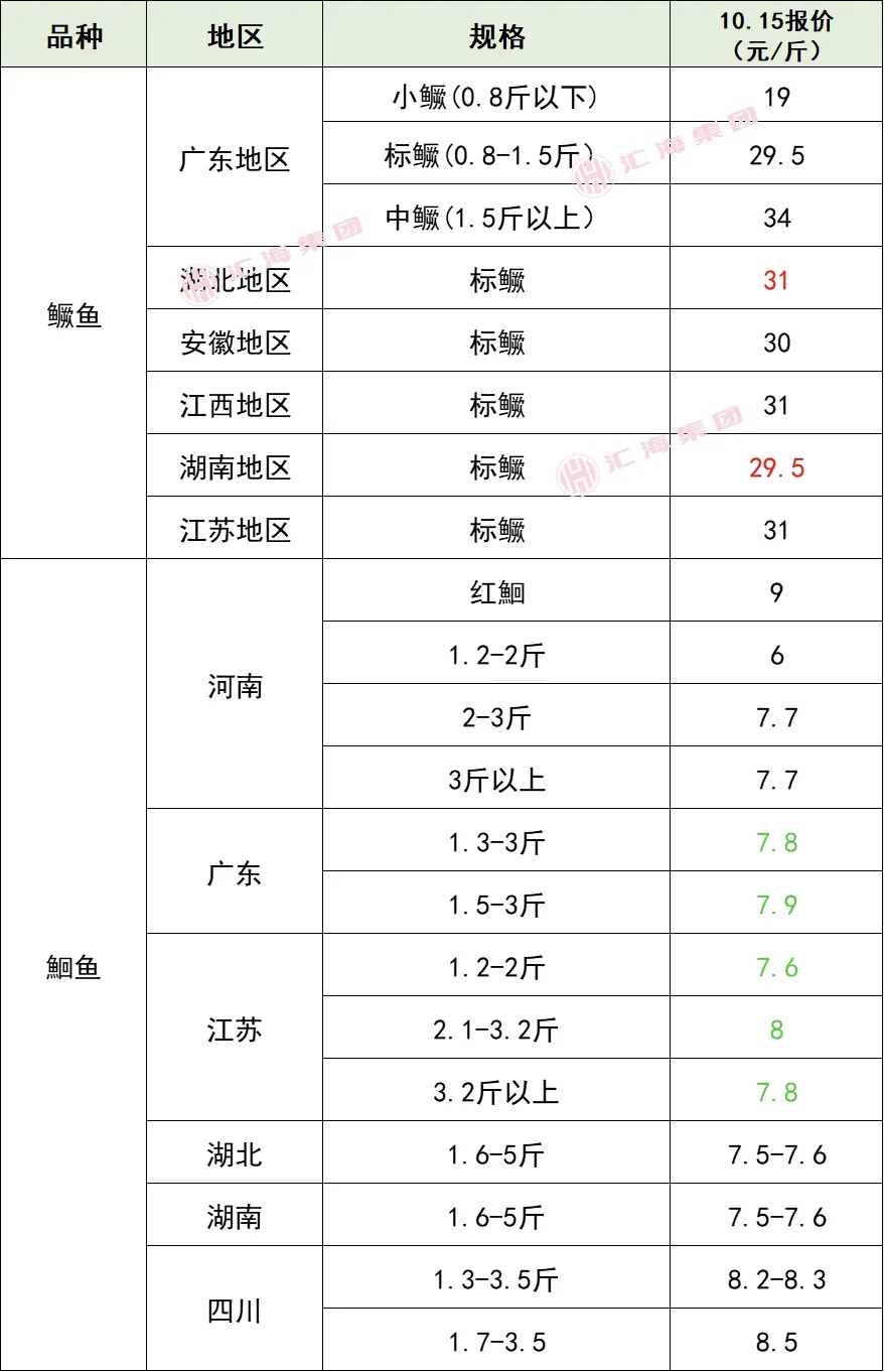 价格行情 2025年10月16日全国部分地区水产品塘头收购价格