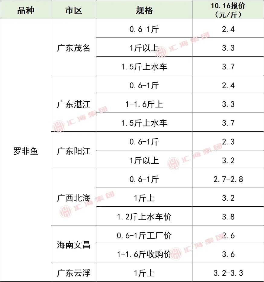 标题: 2025年10月16日全国部分地区水产品塘头收购价格