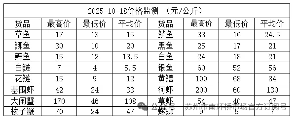 标题: 2025年10月18日苏州南环桥批发市场部分水产品批发价