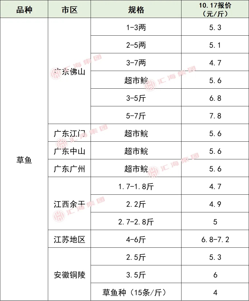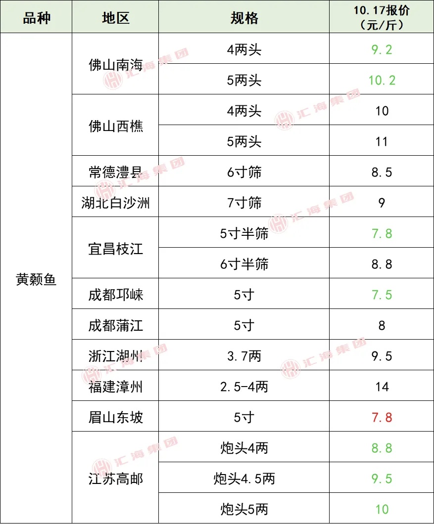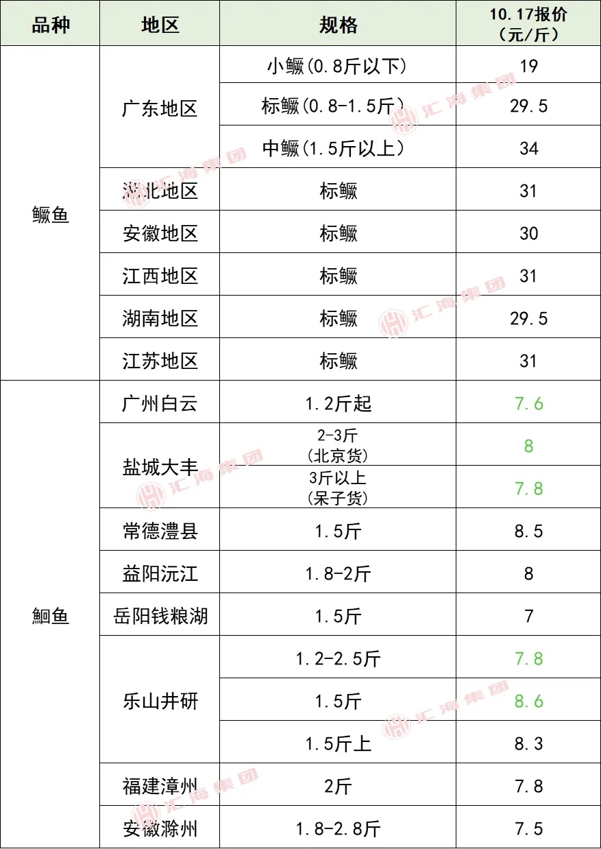 价格行情 2025年10月18日全国部分地区水产品塘头收购价格