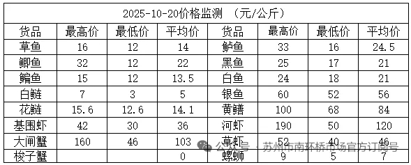 标题: 2025年10月20日苏州南环桥批发市场部分水产品批发价