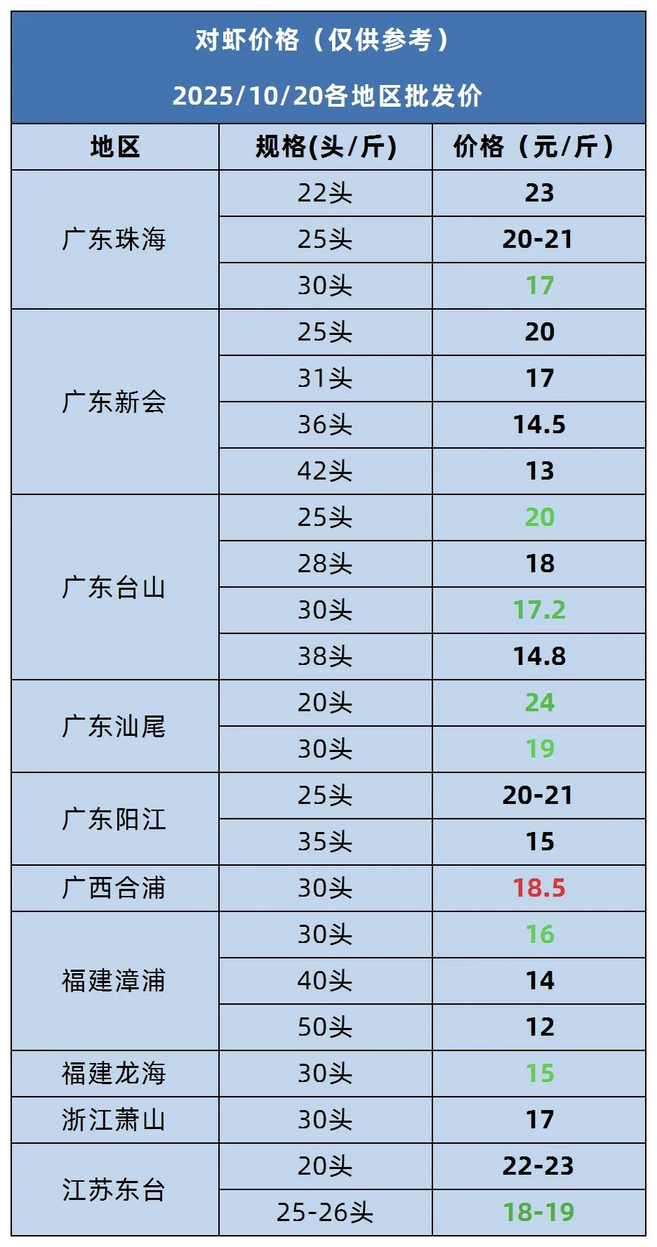 标题: 2025年10月20日对虾报价