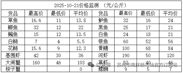 标题: 2025年10月21日苏州南环桥批发市场部分水产品批发价