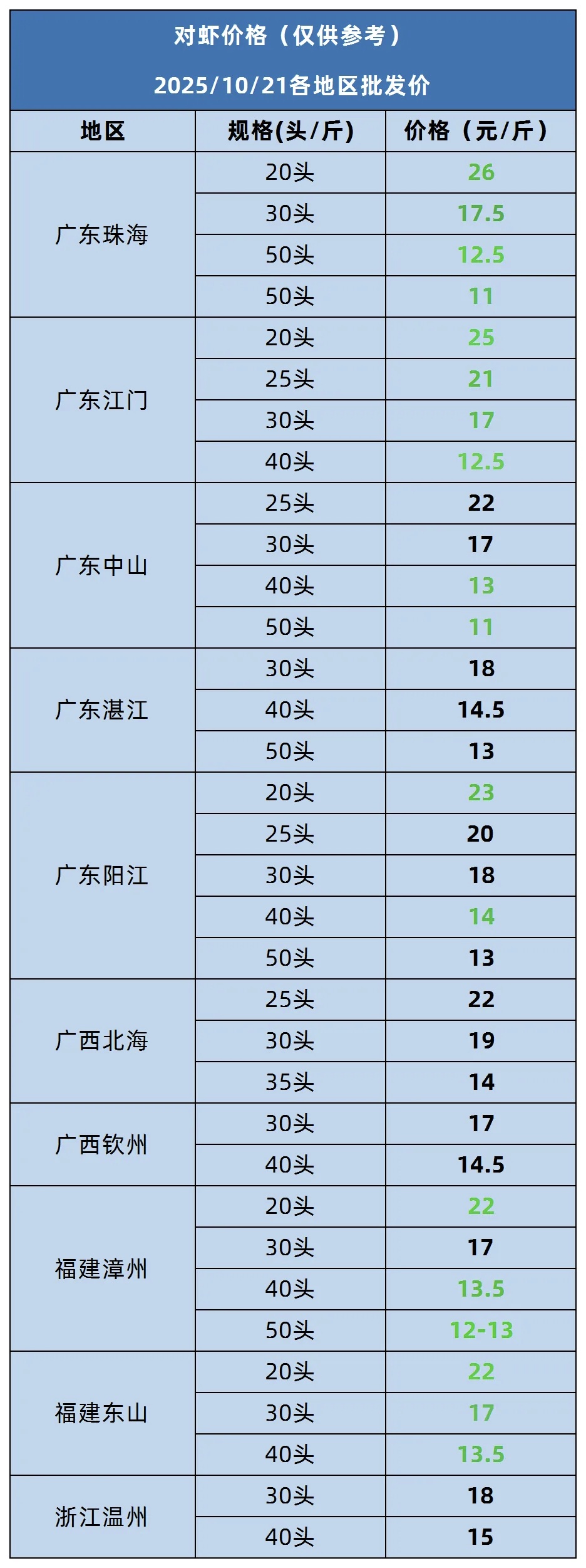 标题: 2025年10月21日对虾报价