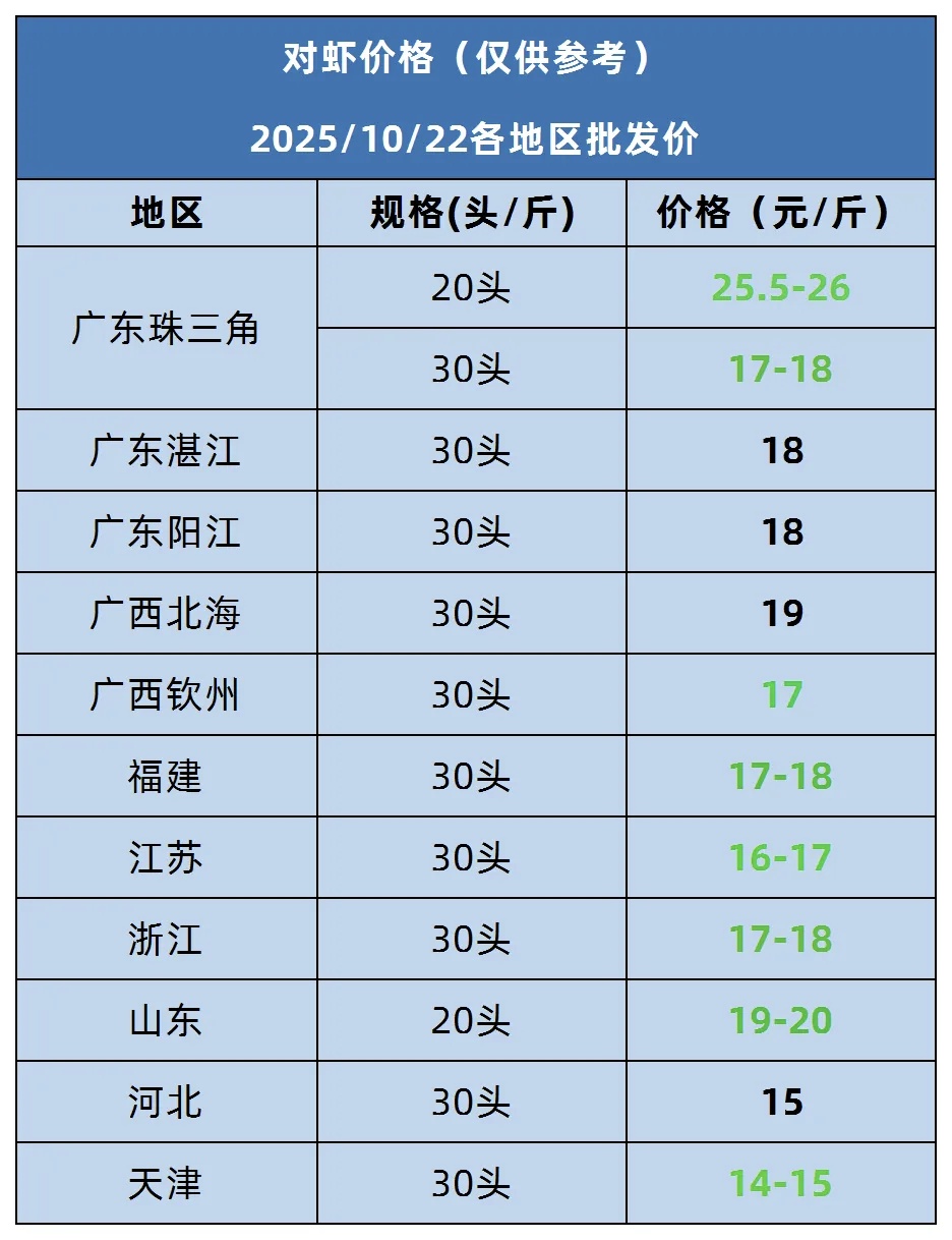 标题: 2025年10月22日对虾报价