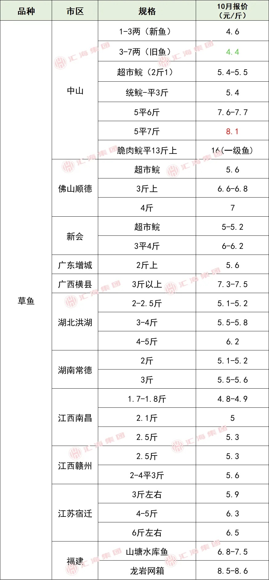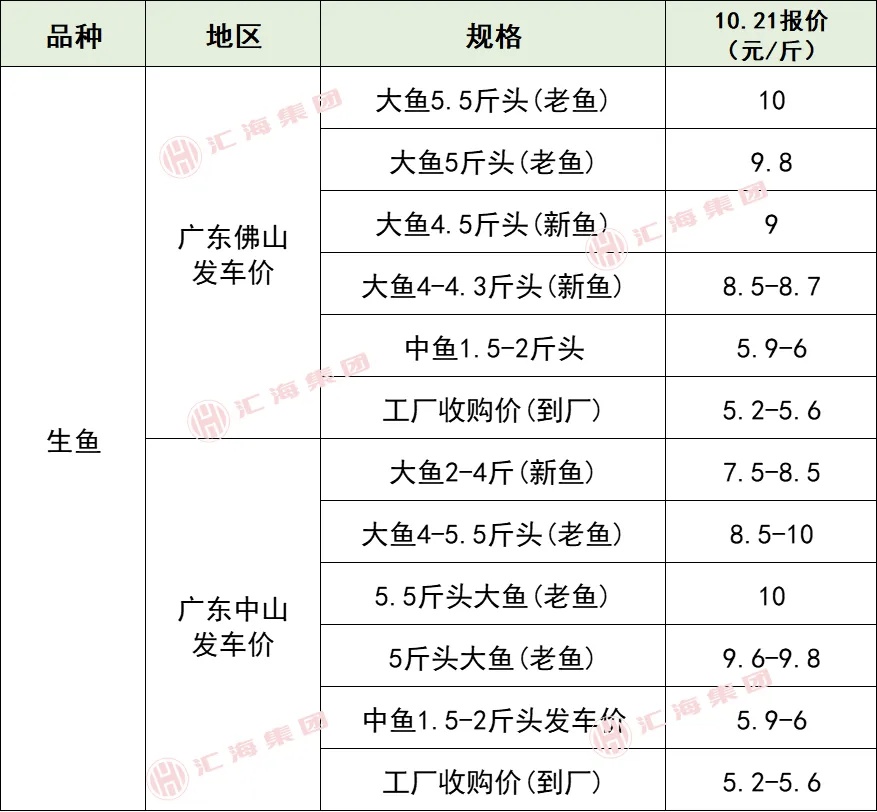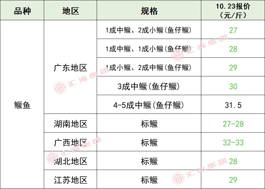 标题: 2025年10月23日全国部分地区水产品塘头收购价格