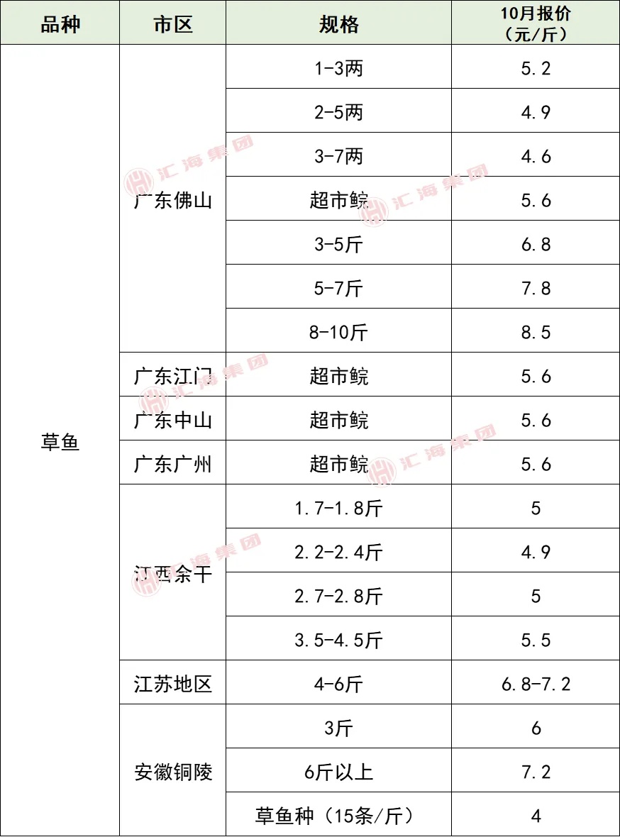 价格行情 2025年10月29日全国部分地区水产品塘头收购价格