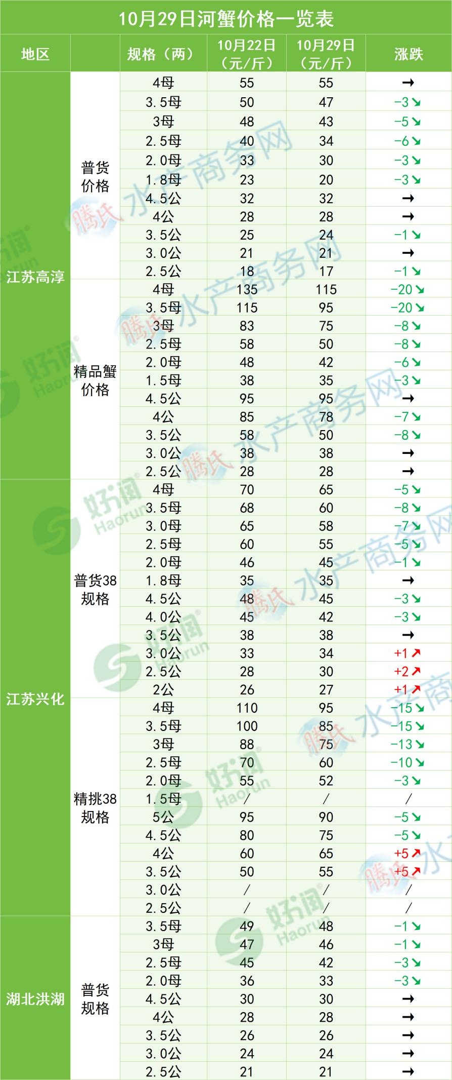 价格行情 价格回调!上市量逐渐增多,精品母蟹最高跌20元/斤