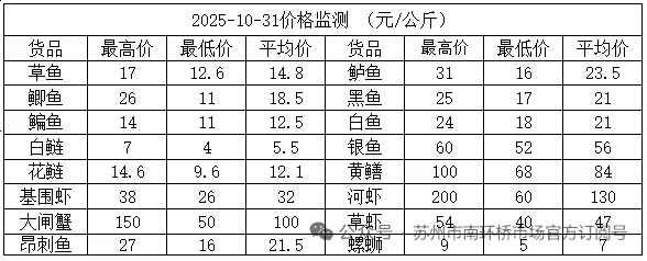 标题: 2025年10月31日苏州南环桥批发市场部分水产品批发价