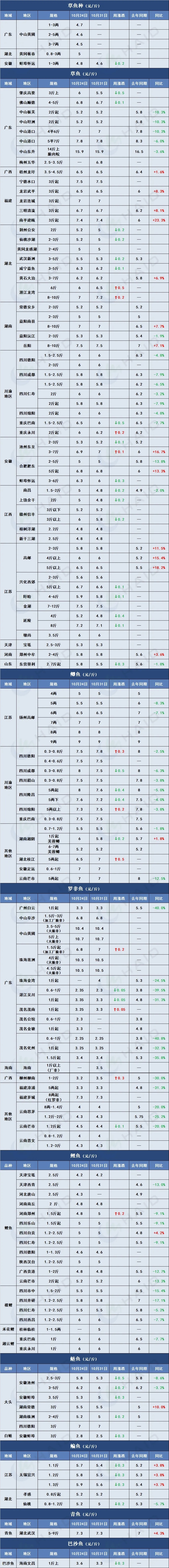 河南地区:草鱼受规格影响较大,各区域草鱼规格越大价格越高,且相对走鱼速度较快;当前温度下降后,外围市场草鱼对河南地区价格有一定冲击;目前二零草鱼苗普遍规格0.8-1斤,民权1-2斤草鱼占比较高。四川地区:仁寿市场近期陆续清塘,没有清塘计划的养户大多没有动网,价价格相对稳定。