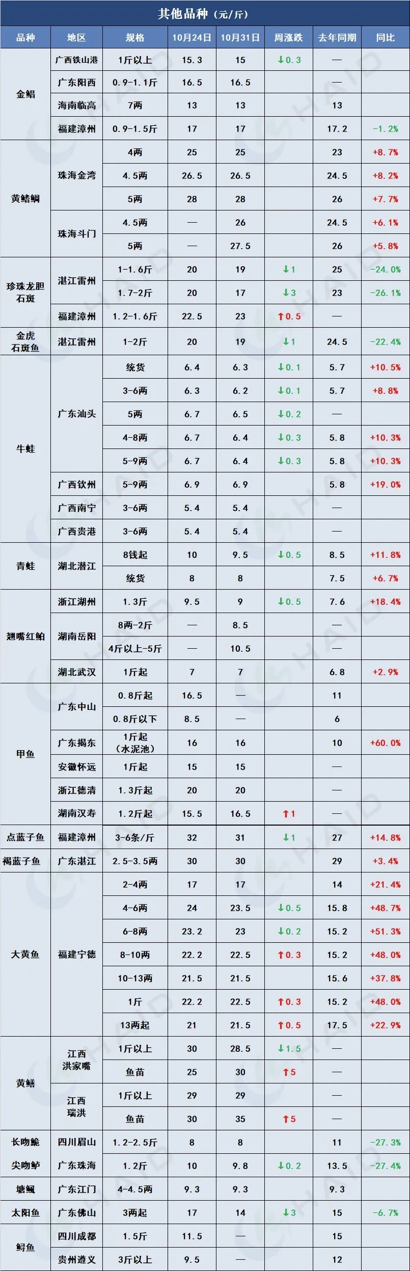 价格行情 鱼价行情 | 太难了!惜售等价还是出鱼保本?越冬在即怎么选都煎熬…10月31日全球最新塘头价
