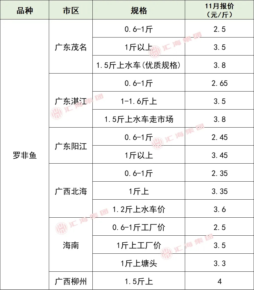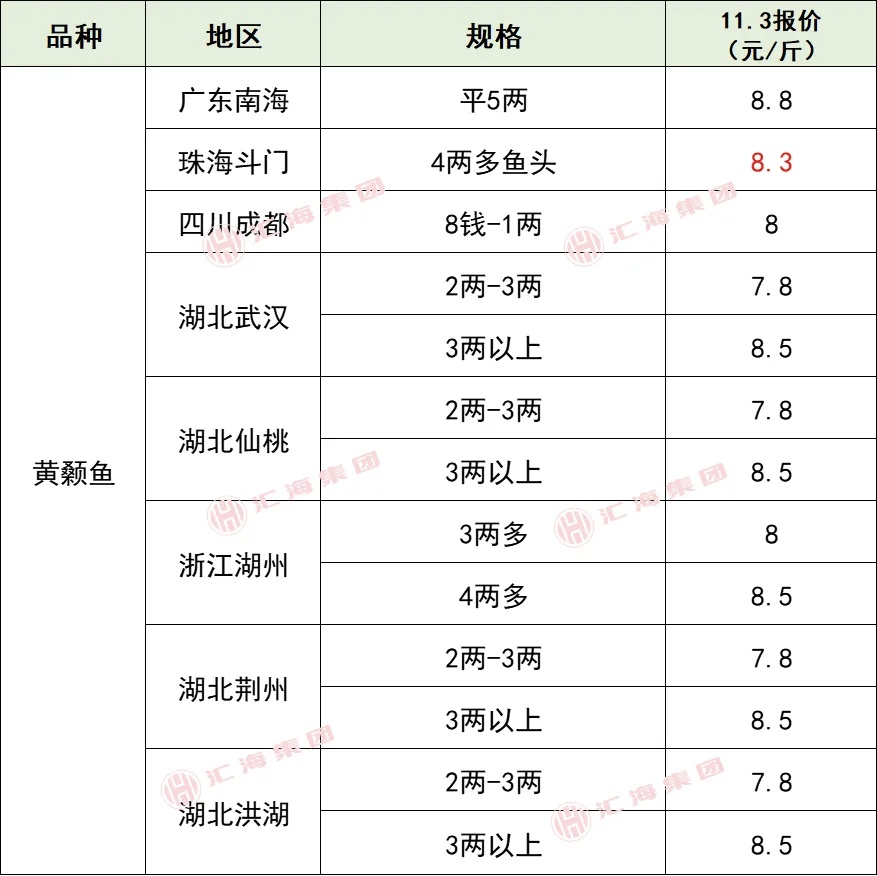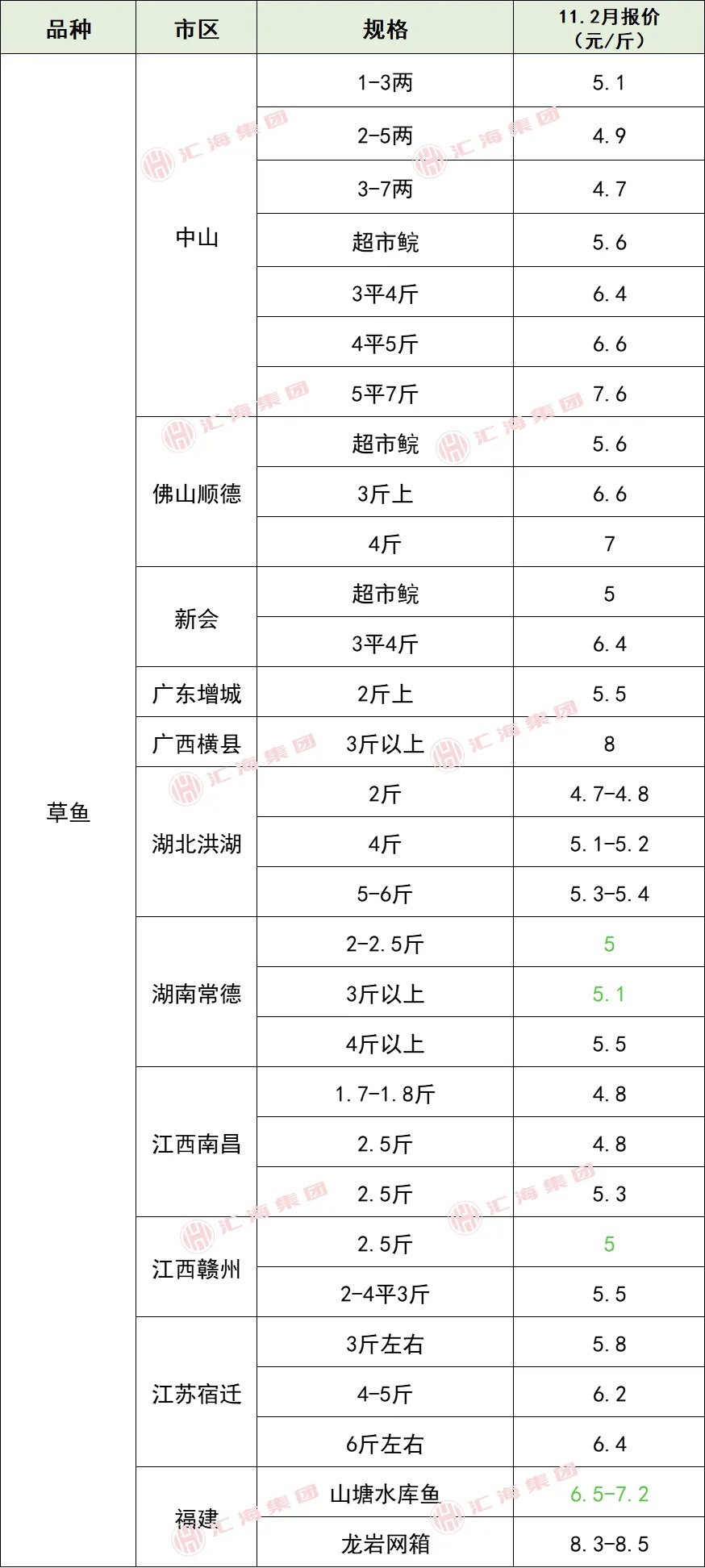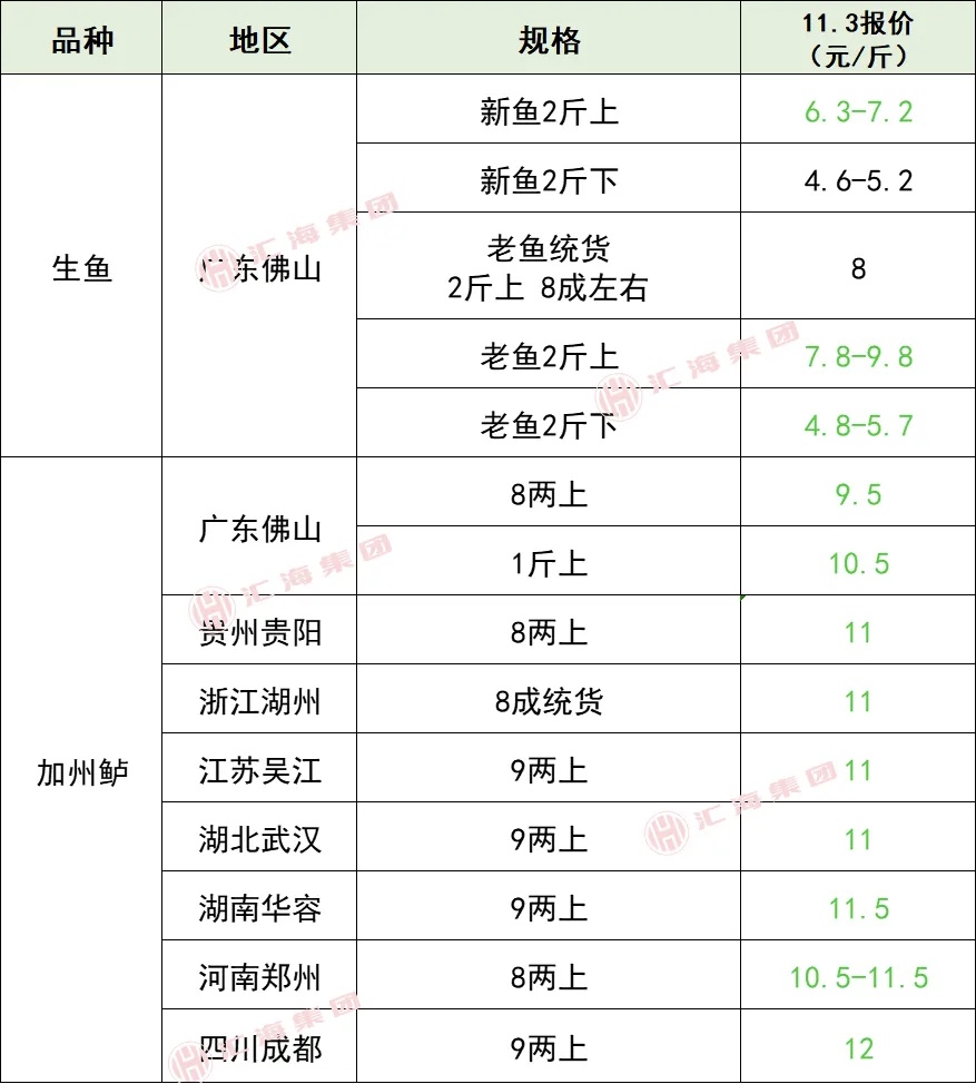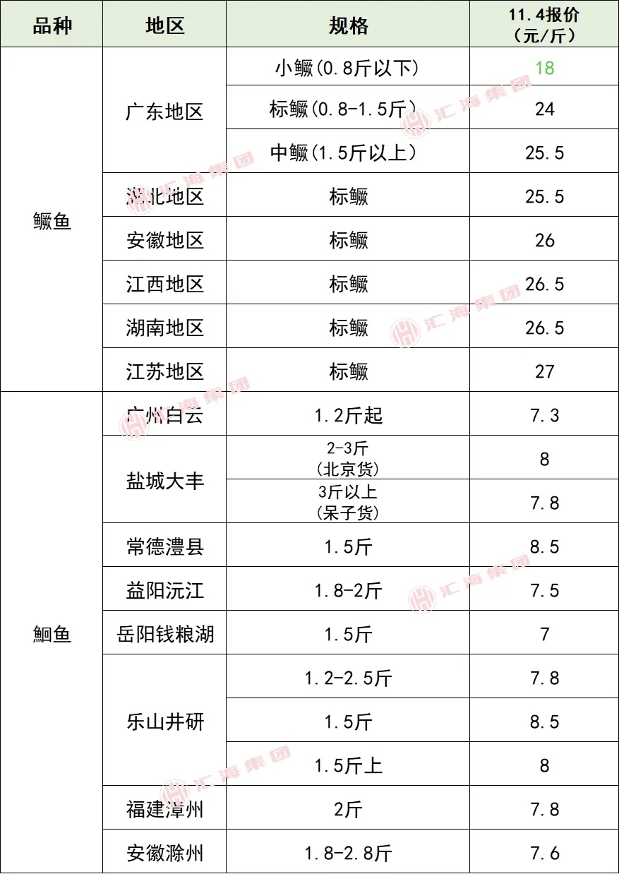 价格行情 2025年11月4日全国部分地区水产品塘头收购价格