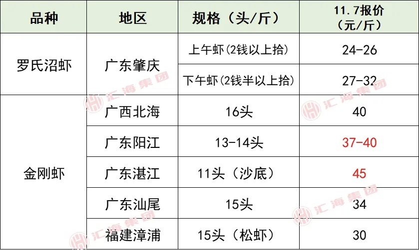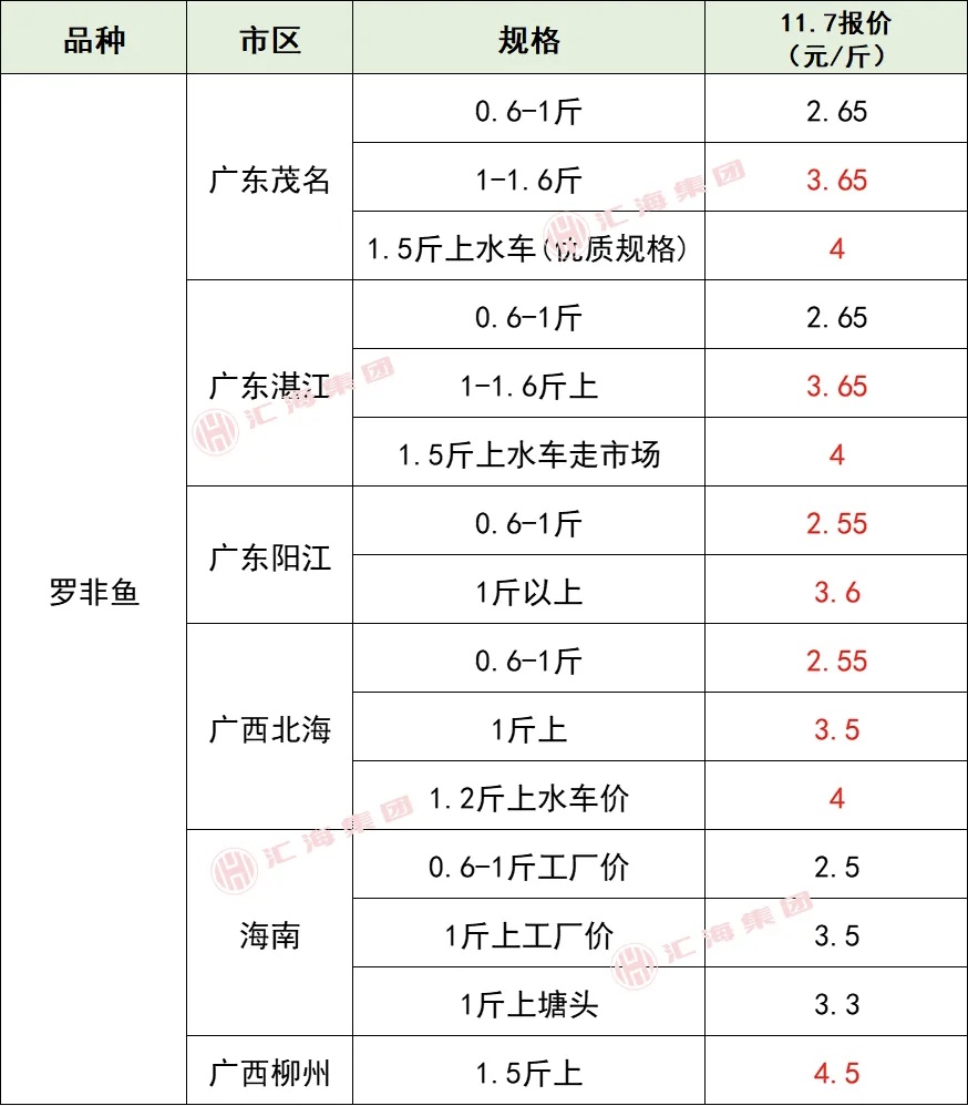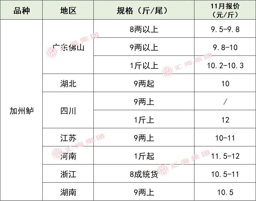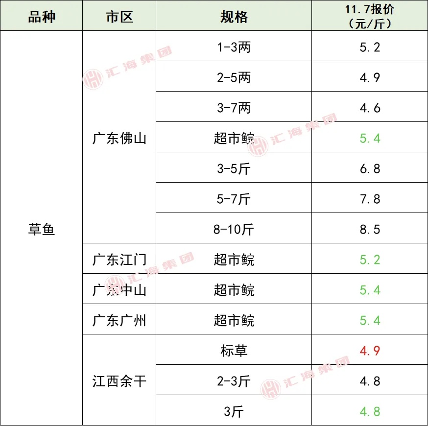 价格行情 2025年11月7日全国部分地区水产品塘头收购价格