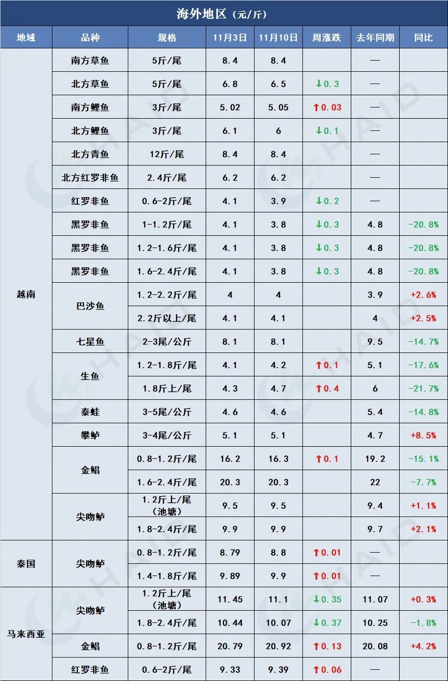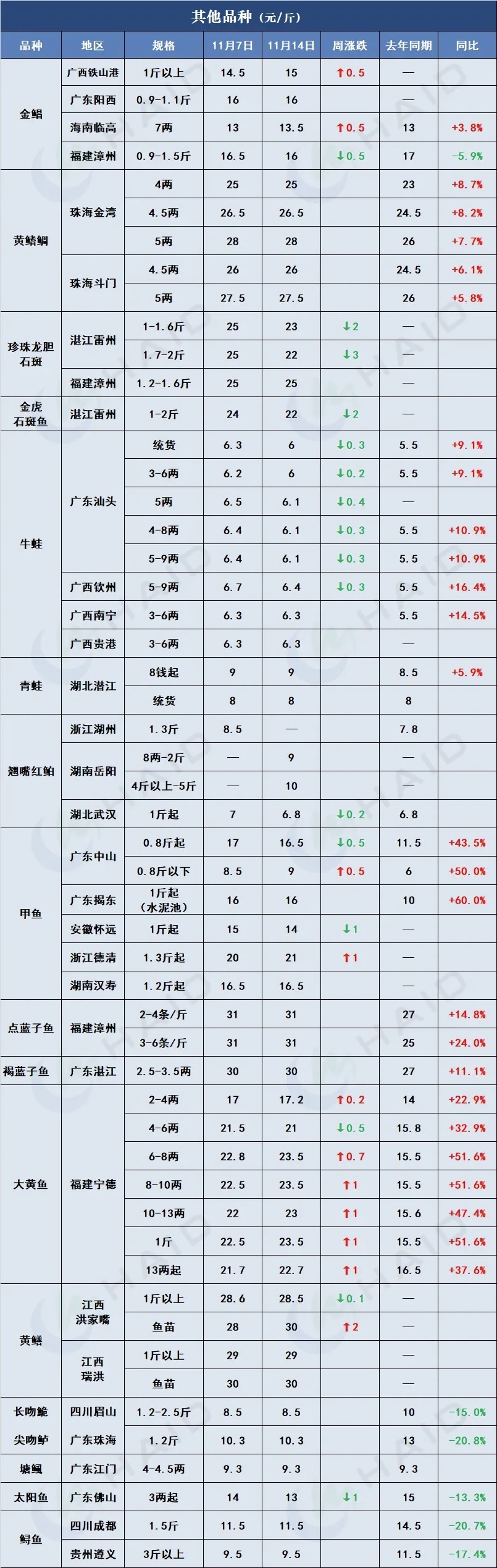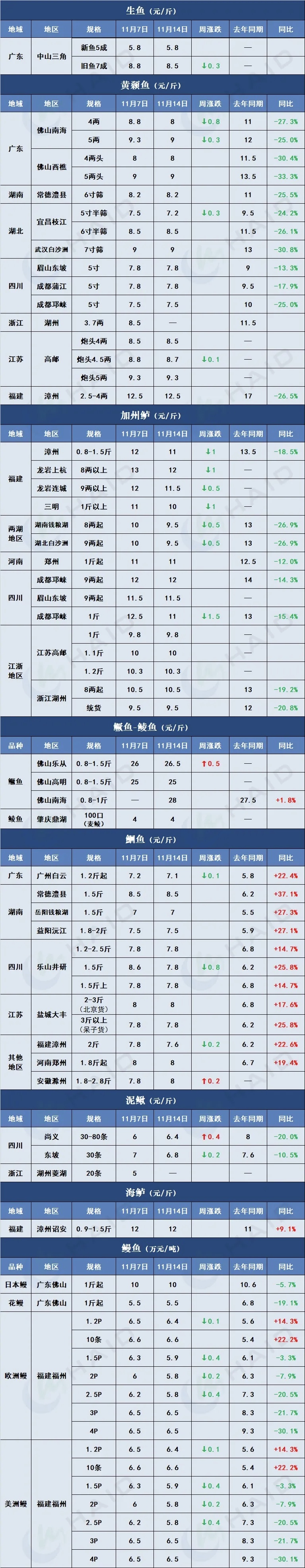 价格行情 鱼价行情 | 卖怕亏,存塘险!现在哪条鱼最值钱?11月14日全球最新塘头价