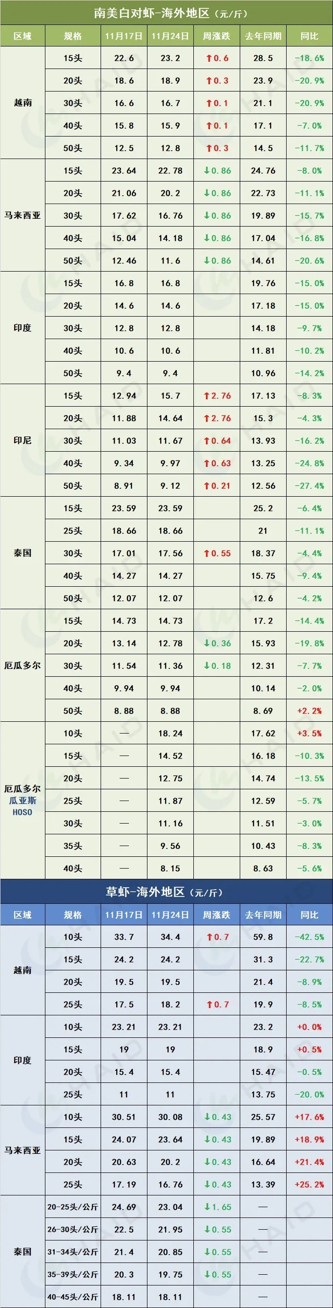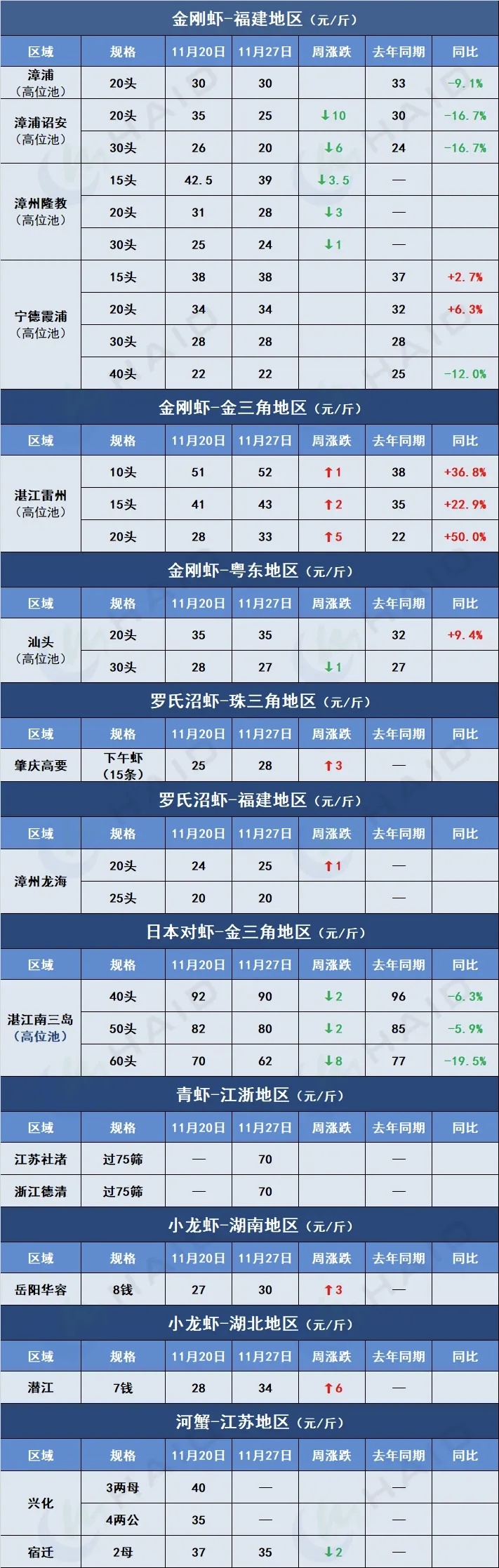 价格行情 虾价行情 | 稳中有升,大虾存塘告急!新一轮波动在即?11月27日全球最新塘头价