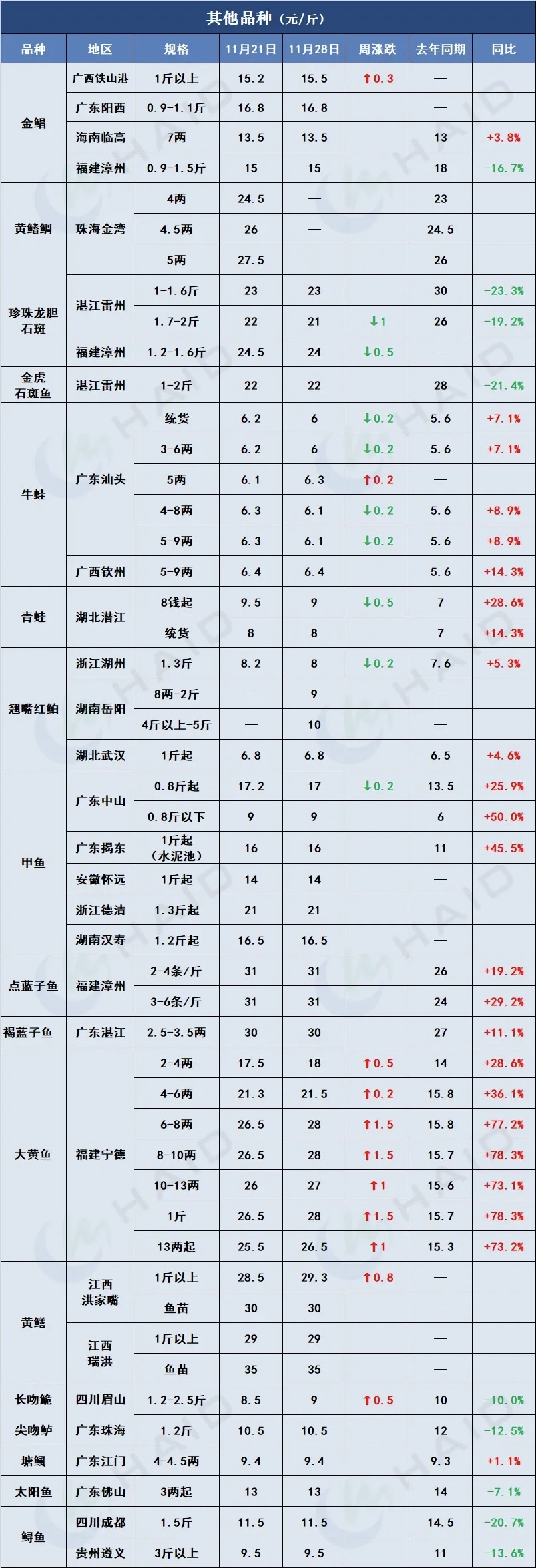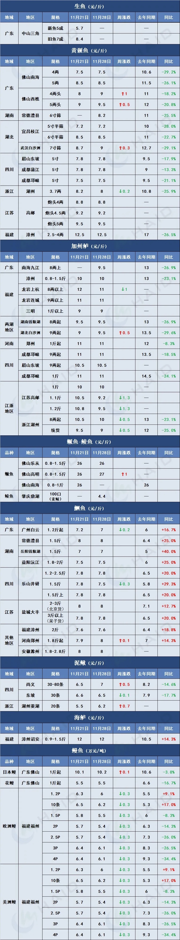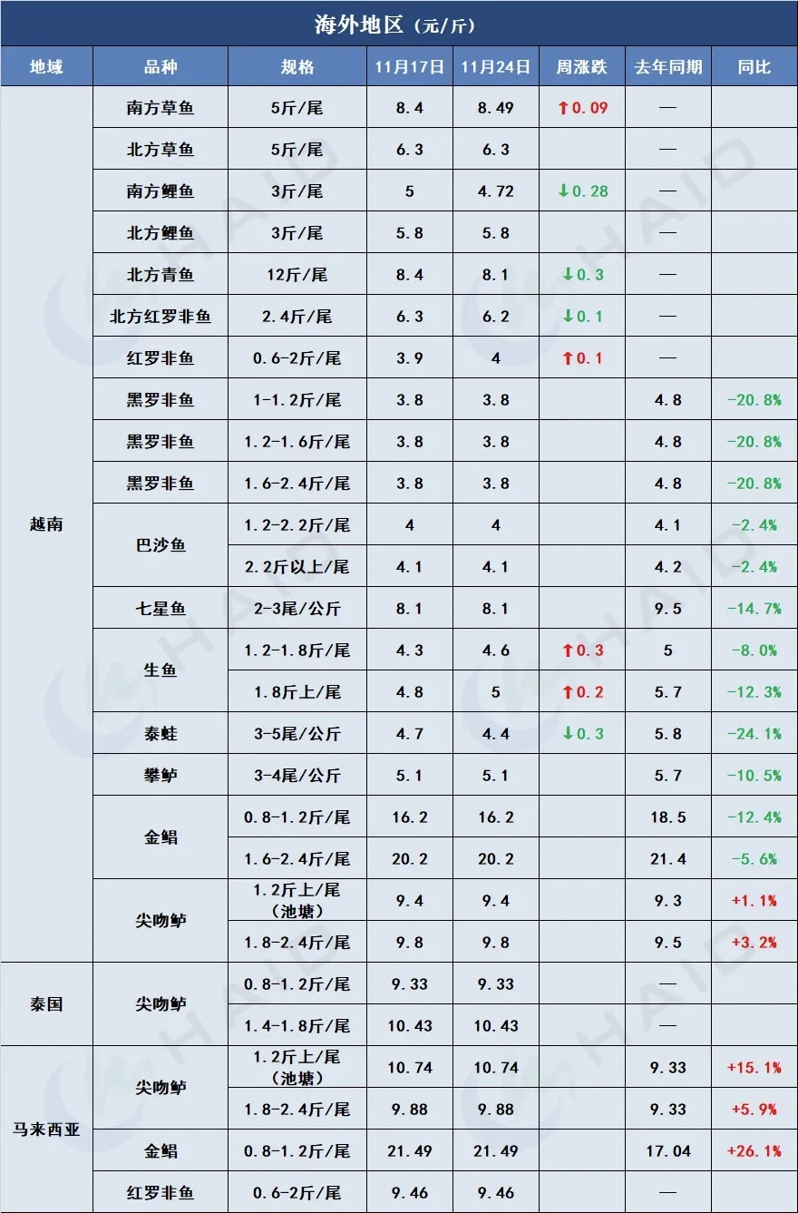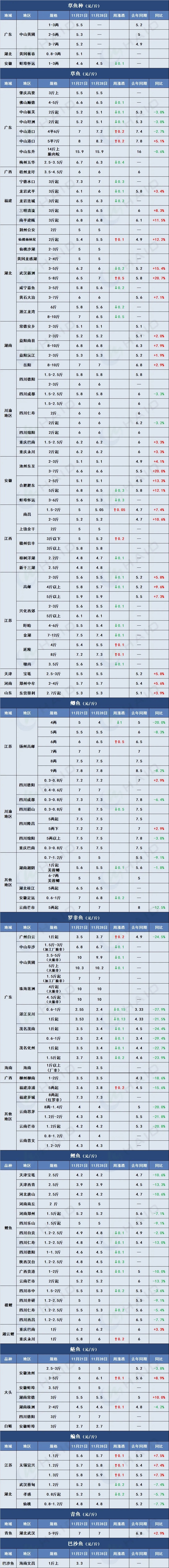 价格行情 博弈加剧!大宗鱼稳健,特种鱼承压,谁藏有涨机?11月28日全球最新塘头价
